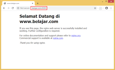 4. Kita tes Apache dan Nginx sudah berjalan atau belum di web browser menggunakan domain.